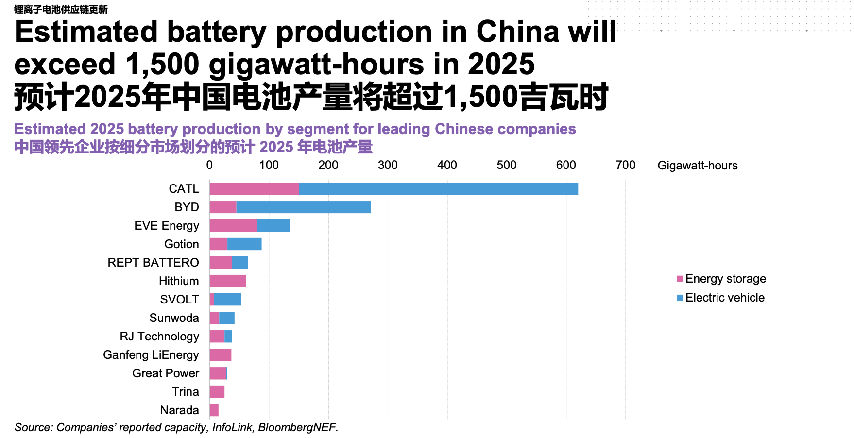 “中国储能电池在生产端正快速扩张,预计今年产量大于550 GWh,动力电池产量则接近1000 GWh。”