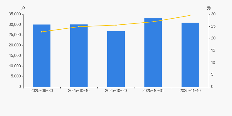 2025年9月30日至今,公司股东户数有所增长,区间涨幅为2.87%。2025年9月30日至2025年11月10日区间股价上涨29.84%。