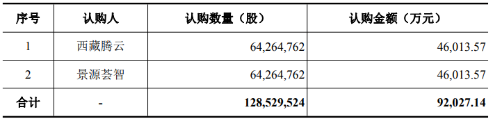 公司实际控制人黄涛通过西藏腾云、景源荟智拟认购本次向特定对象发行股票的全部股份数量。