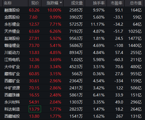 【导读】A股市场震荡调整,锂矿板块走高,金圆股份直线拉升,斩获三连板