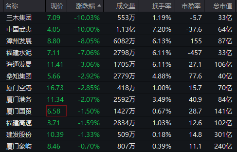福建板块再度走低,三木集团、中国武夷跌停,福建水泥、漳州发展、厦门航空跟跌。