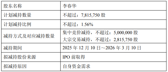 截至本公告披露之日,公司股东李春华持有公司股份10,815,750股,占公司总股本的2.15%;李春华为公司控股股东、实际控制人的一致行动人。