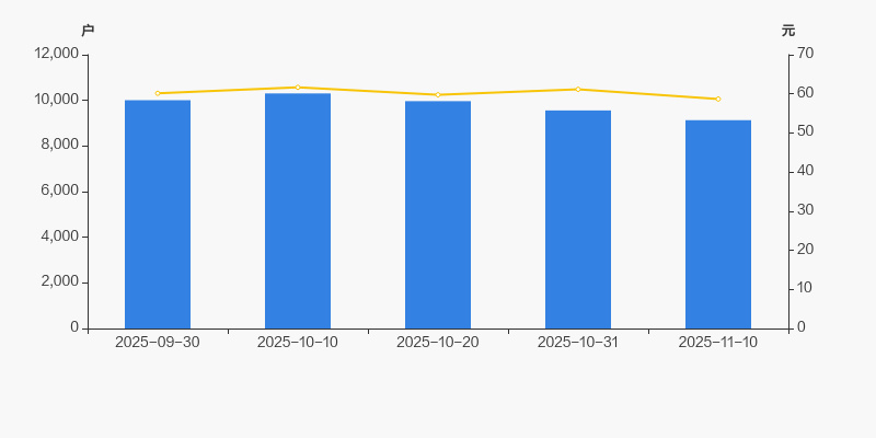 截至2025年11月10日,公司最新总股本为6000万股,其中流通股本为5571.38万股。户均持有流通股数量由上期的5828股上升至6101股,户均流通市值35.8万元。