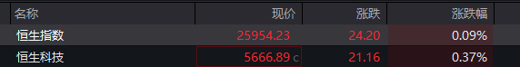恒生指数开盘涨0.09% 恒生科技指数涨0.37%