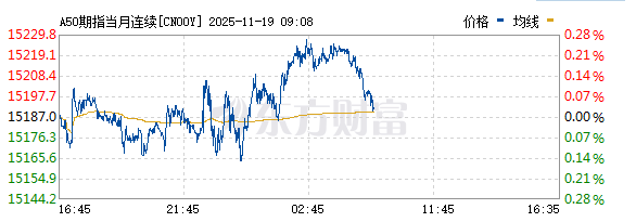 11月19日,富时中国A50指数期货在上一个交易日夜盘收涨0.08%的基础上高开,截至9时08分,主力合约涨0.03%。