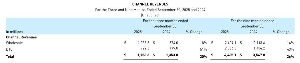库存方面,第三季度库存同比增长28%,略低于30%的营收增速。管理层在电话会上指出,主要由于季节性商品提前备货,海运占比提升导致在途库存增加、美元走弱的汇率影响及收购韩国业务带来的库存,预计2026年下半年库存增速将回归正常。