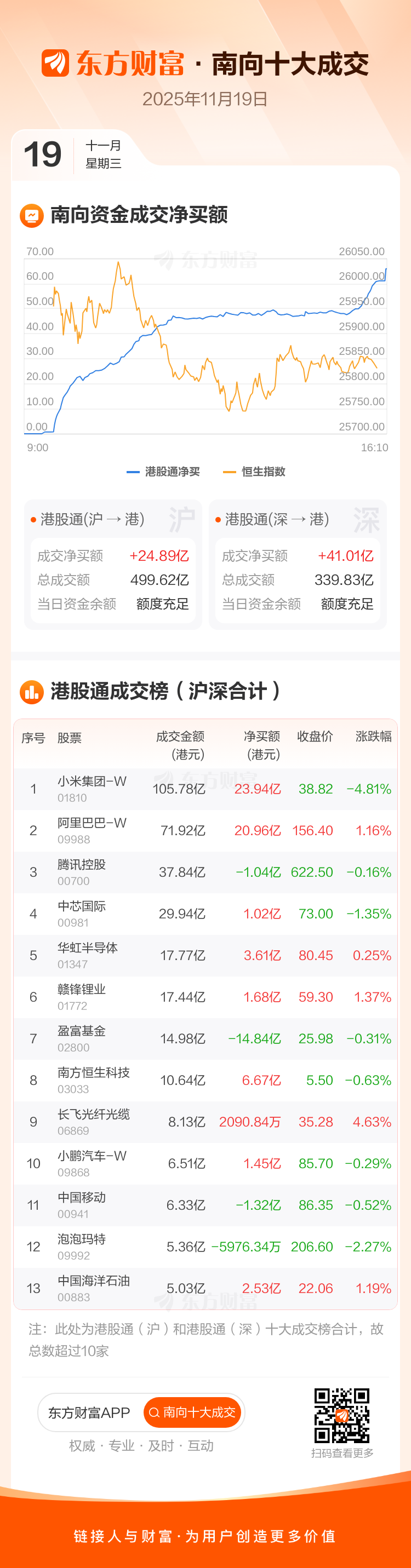 11月19日南向资金净买逾65亿港元,逾23亿抢筹小米集团-W