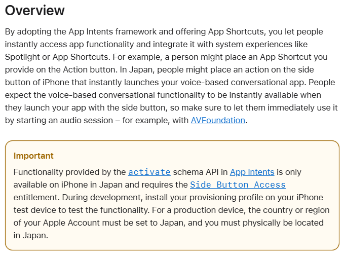 苹果明确表示,使用 App Intents 激活第三方个人助理的功能目前仅在日本的 iPhone 上可用,其他国家/地区暂不支持。要使用此功能,Apple 帐户的国家/地区必须设置为日本,且用户本人必须位于日本。