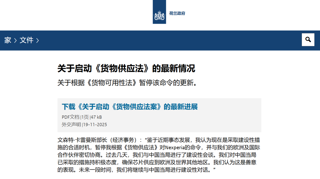 【导读】荷兰政府宣布:暂停对安世半导体的行政令