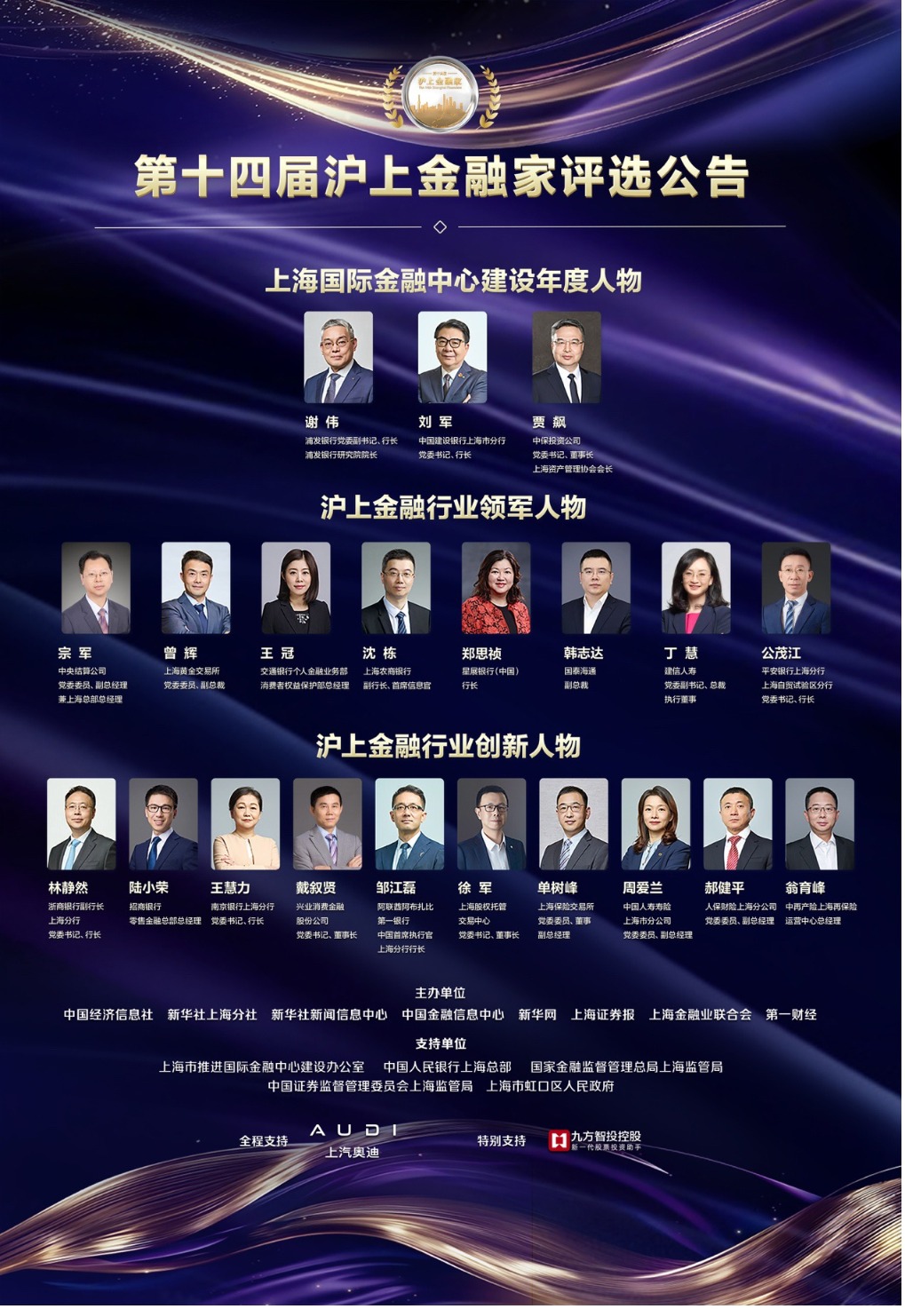 据悉,“沪上金融家”评选自创办以来已连续举办14届,累计300余位金融人才获奖,对增强上海国际金融中心软实力、营造金融文化氛围产生重要作用。