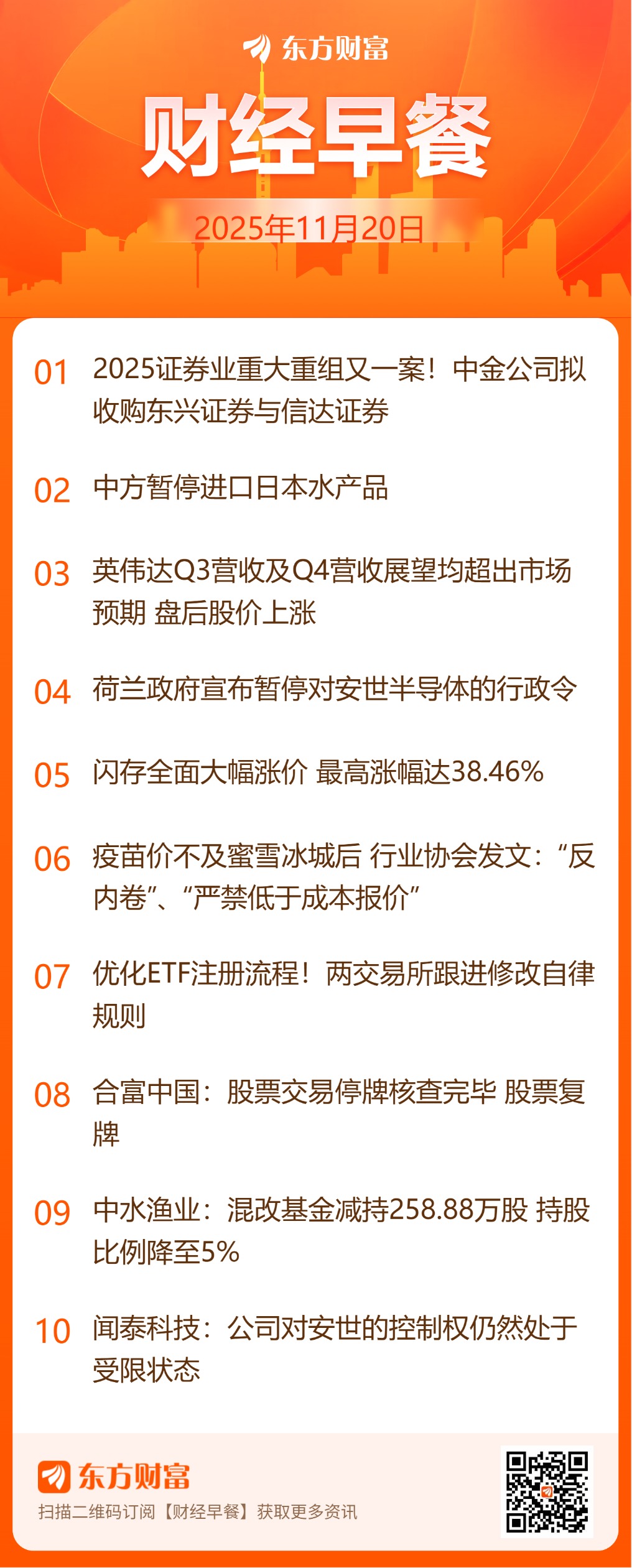 东方财富财经早餐 11月20日周四