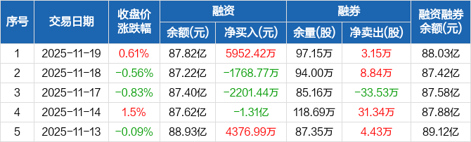兴业银行:融资净买入5952.42万元,融资余额87.82亿元(11-19)