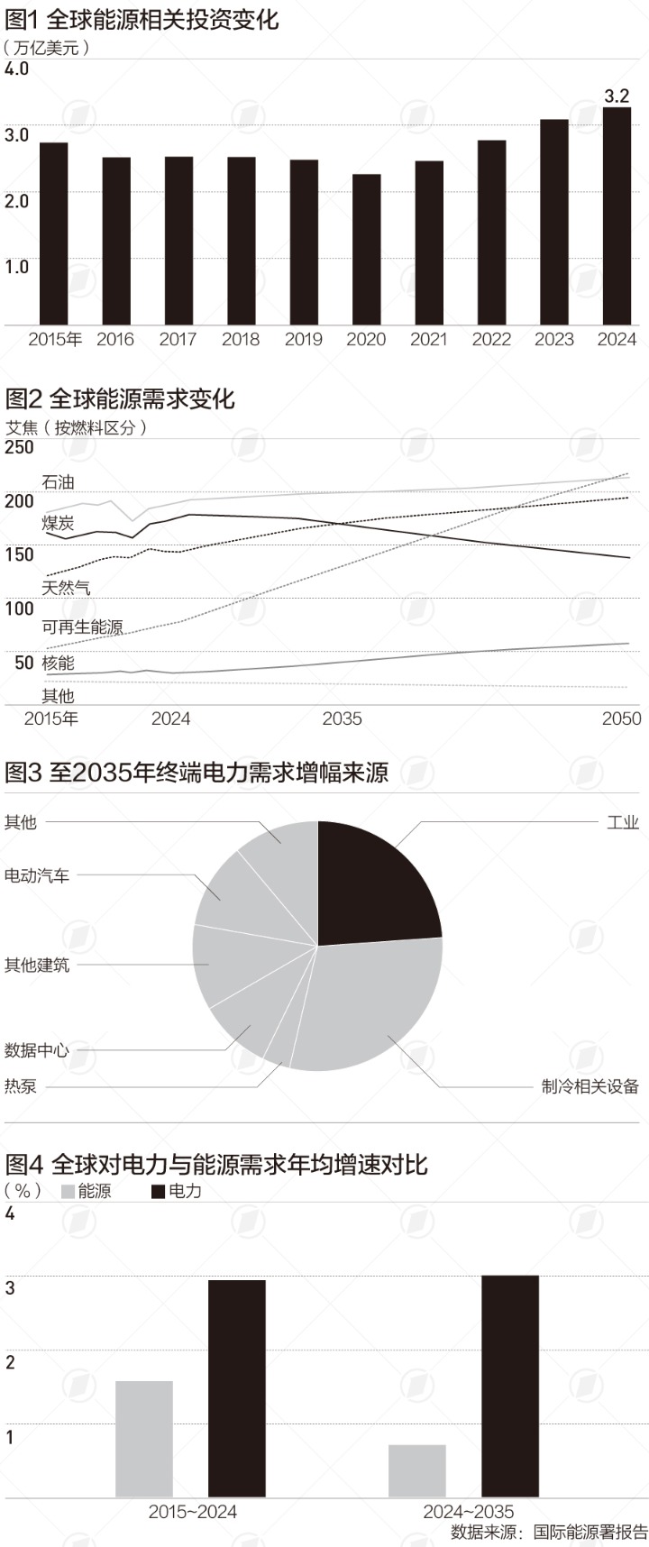 由此,全球能源需求将从目前的654艾焦(EJ)增加到2035年的705艾焦,这一增幅大致相当于欧盟目前的能源需求。投资者也在积极响应这一趋势。IEA数据显示,2025年,全球能源领域的投资总规模约为3.3万亿美元,较2024年增长2%,创历史新高。