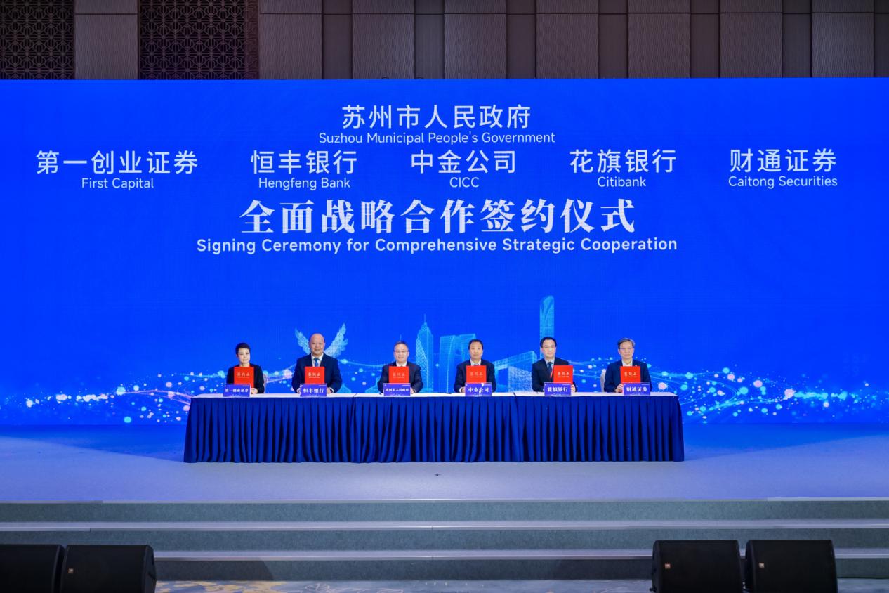 会上,苏州市政府与中金公司、恒丰银行、花旗银行、第一创业证券、财通证券签署战略合作协议及备忘录。苏州科创基金与涵盖机器人、生物医药、半导体等前沿领域的10家科创企业达成投资合作。苏州市科技金融国际合作发展联合会与香港数码港发布合作,并与江苏省香港商会、电信运营商、华升金控等服务机构集中签约。苏州本地国资平台、在苏重点金融机构、全国性金融与科技企业等多方主体进行9个金融领域重点项目合作签约。
