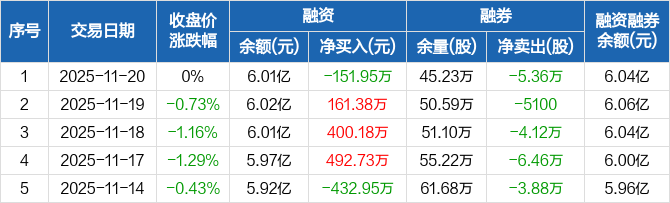 深圳能源:融资净偿还151.95万元,融资余额6.01亿元(11-20)