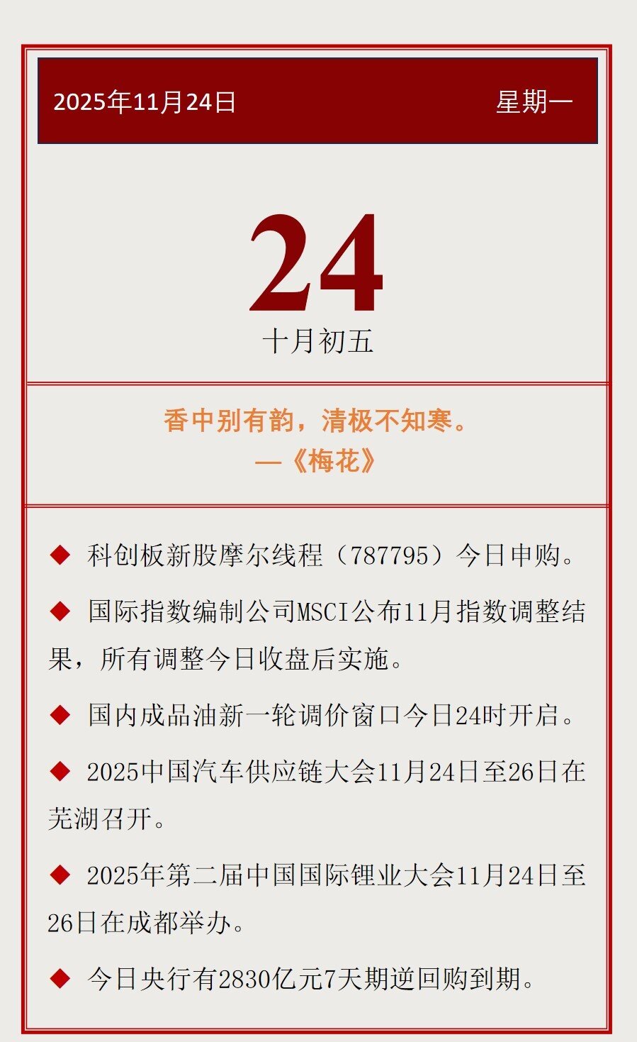 【投资日历】周一(11月24日)资本市场大事