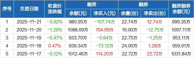 信息技术ETF:融资净偿还107.74万元,融资余额980.95万元(11-21)
