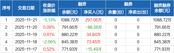 稀土ETF易方达:融资净买入297.06万元,融资余额1088.72万元(11-21)