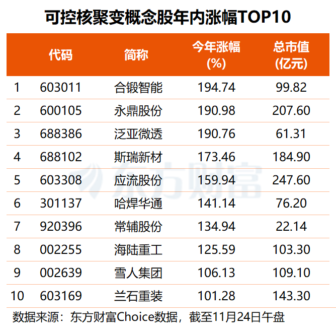 光大证券指出,2025年以来我国核聚变领域迈入技术突破与产业布局的快速发展期,在政策持续引导与“国企牵头+民企协同”的创新模式下我国核聚变领域正加速发展。展望未来,环流四号、星火一号、张杰院士团队的激光聚变能电站等多技术路线并行推进,国内正逐步进入可控核聚变项目招标与工程建设的加速释放期,长期发展值得期待。