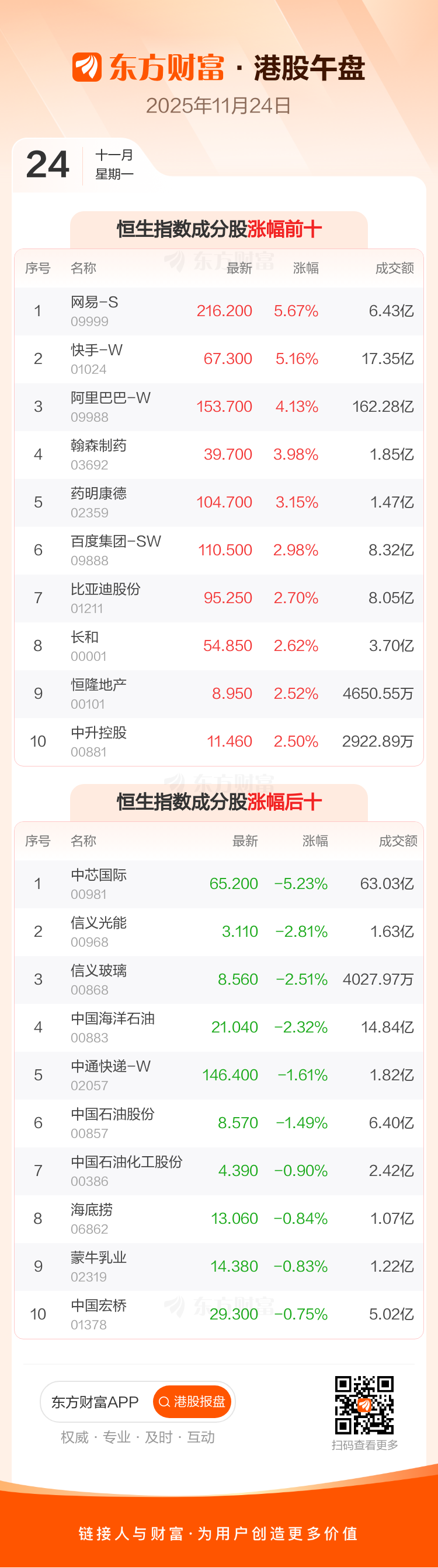 11月24日港股午盘:恒指涨1.42% 网易-S领涨成分股