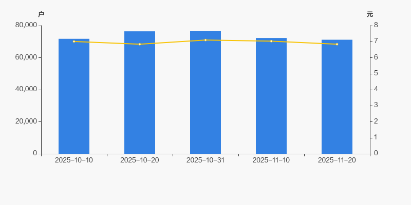 2025年10月10日至今,公司股东户数有所下降,区间跌幅为0.80%。2025年10月10日至2025年11月20日区间股价下降2.43%。