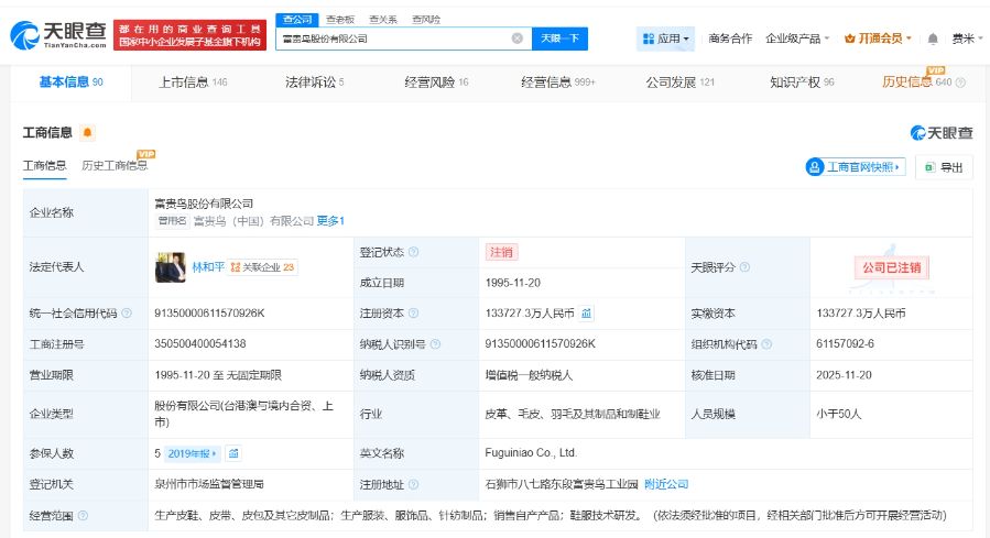 昔日“鞋王”富贵鸟公司因宣告破产注销