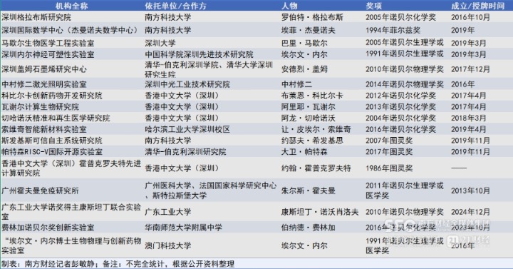据南方财经记者不完全统计,截至2025年11月,粤港澳大湾区已落地由诺贝尔奖、图灵奖得主领衔的实验室或研究院超过17个,并且大部分依托高校。