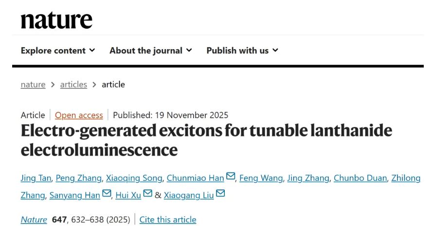 据央视新闻,近日,黑龙江大学、清华大学和新加坡国立大学合作完成的突破性研究成果在《Nature》正式发表,成功攻克绝缘性稀土纳米晶的高效电致发光这一世界难题。该研究为实现我国稀土资源从“原料出口”向“高附加值技术输出”的战略转型提供了关键核心技术支撑。