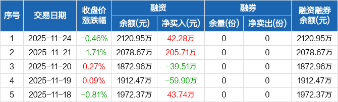 红利低波100ETF:融资净买入42.28万元,融资余额2120.95万元(11-24)