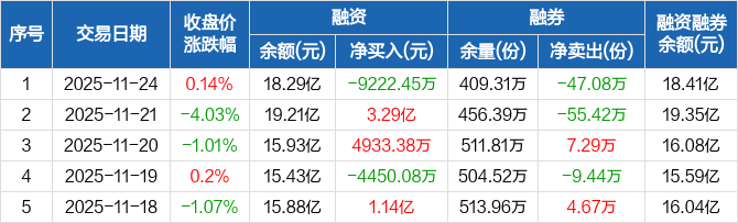 创业板ETF:融资净偿还9222.45万元,融资余额18.29亿元(11-24)