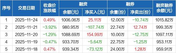 信息技术ETF:融资净买入25.11万元,融资余额1006.06万元(11-24)