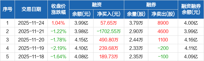 怡合达:融资净买入57.65万元,融资余额3.99亿元(11-24)