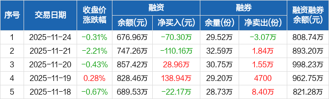沪深300ETF南方:融资净偿还70.3万元,融资余额676.96万元(11-24)