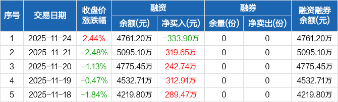 港股科技50ETF:融资净偿还333.9万元,融资余额4761.2万元(11-24)