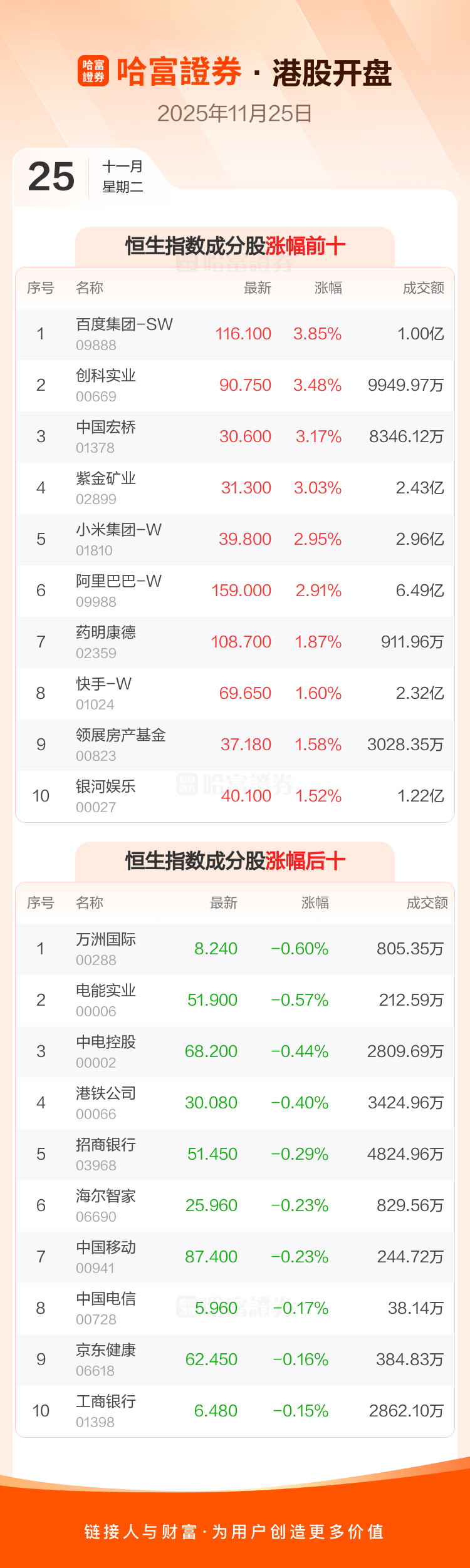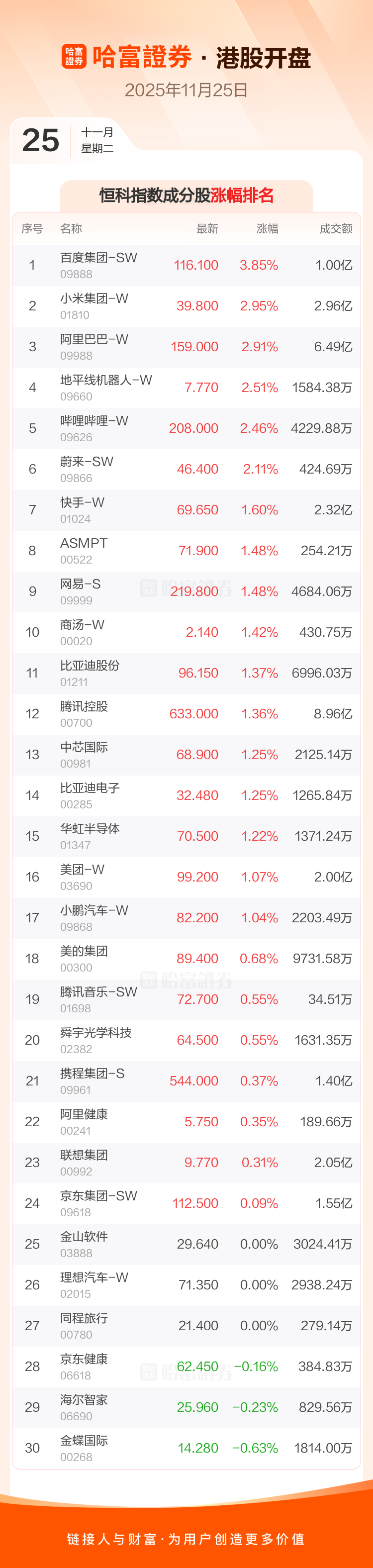 港股开盘:恒指高开0.9% 百度集团-SW领涨成分股