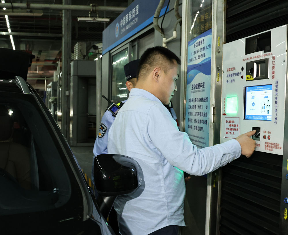 11月15日零时,“粤车南下”首位通关车主周先生在“一站式”通道办理通关手续。新华社记者黄国保摄