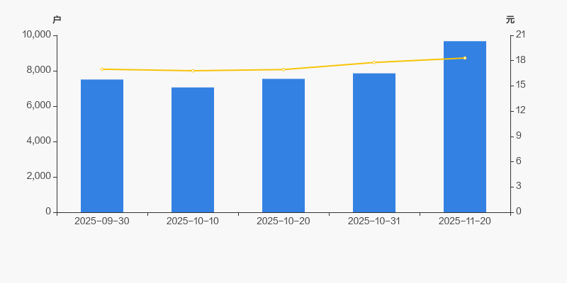 截至2025年11月20日,公司最新总股本为1.33亿股,其中流通股本为6685.25万股。户均持有流通股数量由上期的8513股下降至6913股,户均流通市值12.66万元。