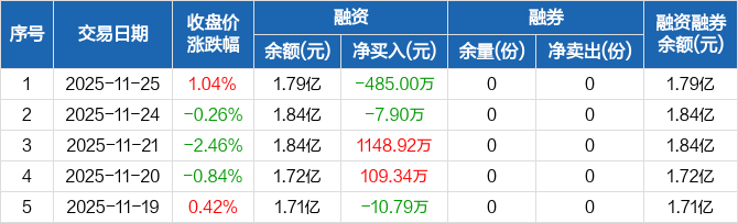 自由现金流ETF:融资净偿还485万元,融资余额1.79亿元(11-25)