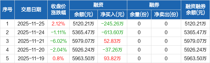 锂电池ETF:融资净偿还245.26万元,融资余额5120.21万元(11-25)