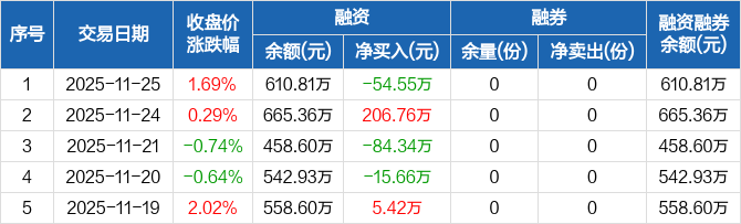 金ETF:融资净偿还54.55万元,融资余额610.81万元(11-25)