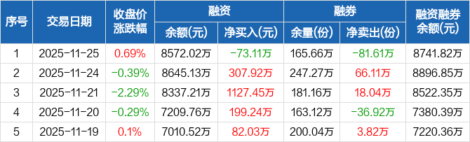 电力ETF:融资净偿还73.11万元,融资余额8572.02万元(11-25)