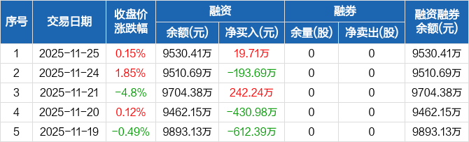 富特科技:融资净买入19.71万元,融资余额9530.41万元(11-25)