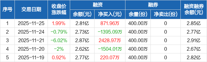 电池ETF:融资净买入871.96万元,融资余额2.81亿元(11-25)