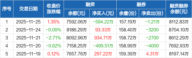 深证100ETF:融资净偿还594.22万元,融资余额7592.06万元(11-25)