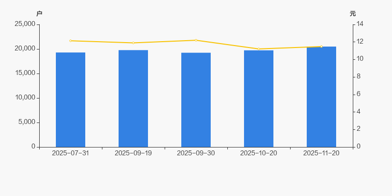 2025年7月31日至今,公司股东户数有所增长,区间涨幅为6.26%。2025年7月31日至2025年11月20日区间股价下降5.45%。