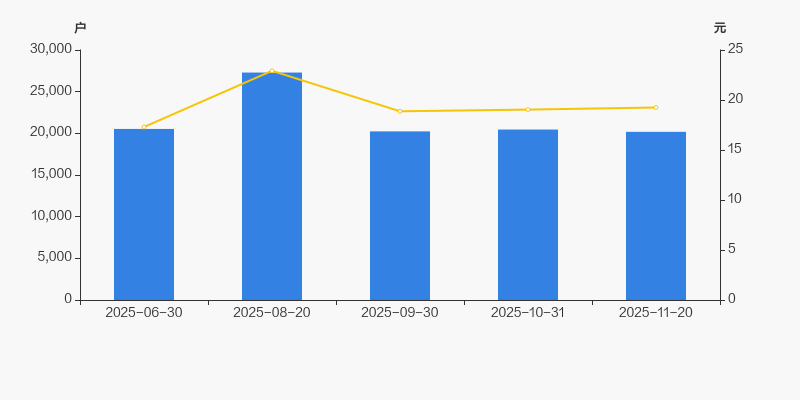 2025年6月30日至今,公司股东户数有所下降,区间跌幅为1.70%。2025年6月30日至2025年11月20日区间股价上涨11.26%。