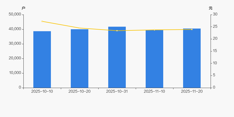 2025年10月10日至今,公司股东户数有所增长,区间涨幅为4.70%。2025年10月10日至2025年11月20日区间股价下降12.26%。