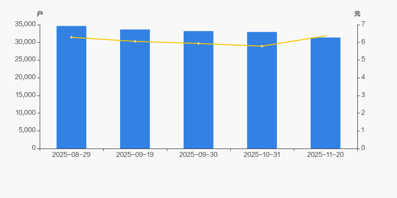 2025年8月29日至今,公司股东户数有所下降,区间跌幅为9.38%。2025年8月29日至2025年11月20日区间股价上涨1.27%。