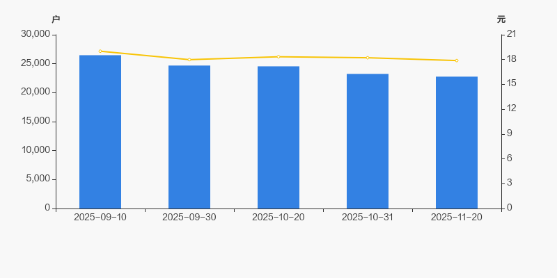 2025年9月10日至今,公司股东户数显著下降,区间跌幅为13.98%。2025年9月10日至2025年11月20日区间股价下降5.96%。