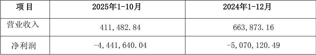 业绩方面,该公司近期处于亏损状态,去年实现营收66.39万元,净利润亏损507.01万元,今年1月至10月实现营收41.15万元,净利润亏损444.16万元。